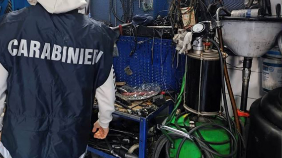 Sul piazzale erano presenti autovetture sottoposte a lavorazioni e un pozzetto collegato alla pubblica fognatura, attorno al quale sono state riscontrate evidenti tracce di olio motore, così come nelle acque di dilavamento dell’area. All’interno dell’officina e di ulteriori due vani al piano terra sono stati rinvenuti altri rifiuti speciali pericolosi, tra cui indumenti e stracci contaminati, imballaggi, parti meccaniche e pneumatici fuori uso.
