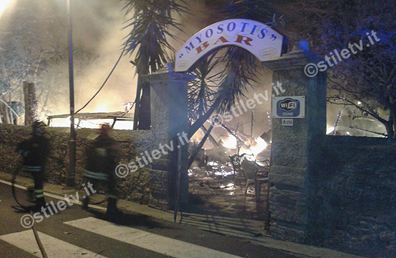 POLLICA. Un incendio divampato nel cuore della notte ha completamente distrutto il noto winebar Myosotis a Pioppi, nel comune di Pollica. La struttura in legno di circa 60 mq, che d’estate è ricolma di turisti, in quanto adibita anche stabilimento balneare essendo posta direttamente sul mare, è sita in Via Caracciolo, lungo la SS267 in località Pietra Serica. Sul posto sono giunti tempestivamente i vigili del fuoco del distaccamento di Vallo della Lucania, diretti dal caposquadra Francesco Vuolo, che hanno impiegato circa due ore per domare il vasto rogo: ridotti in cenere anche tavolini, sedie e numerose attrezzature da giardino (nelle foto). I caschi rossi, che hanno dovuto fare molta attenzione per la presenza di alcune bombole di gpl nei locali adibiti a cucina e bar (sono state fatte allontanare per precauzione alcune famiglie residenti in case limitrofe), non escludono che la matrice delle fiamme possa essere dolosa. Sull’incendio indagano ora i carabinieri della locale Stazione, che hanno eseguito tutti i rilievi del caso.