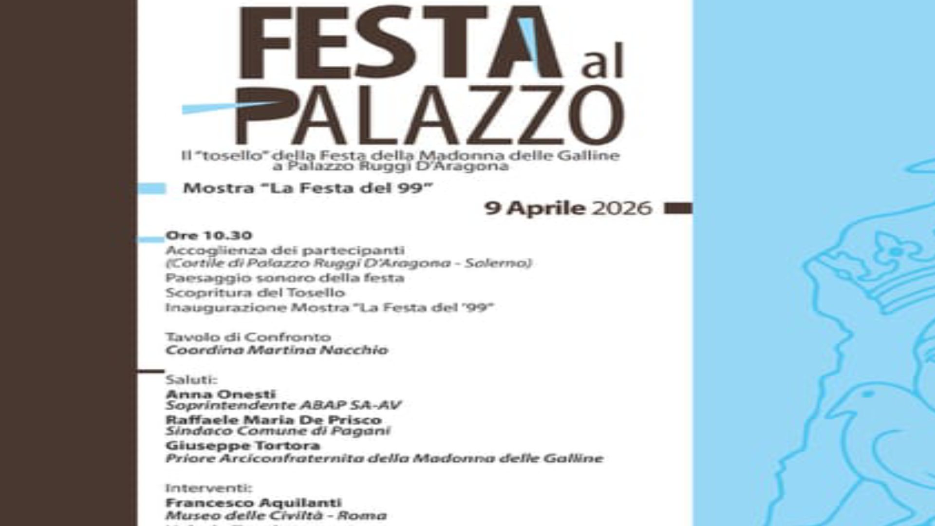 Sabato 2 dicembre, presso il Cinema Augusteo, alle 20.30 è in programma la serata di gala, con la premiazione dei vincitori della 77a edizione del Festival Internazionale del Cinema di Salerno, presentata da Gaetano Stella e Ilaria Cuomo. Diversi i momenti di spettacolo, grazie alla partecipazione della Compagnia di danza Motion del Maestro Fabrizio Esposito, dell’illusionista partenopeo Paolo Calabrò, dell’attore autore e regista Luca Landi e del gruppo musicale le Sette Bocche, con Angelo Plaitano e Daniela Dentato.